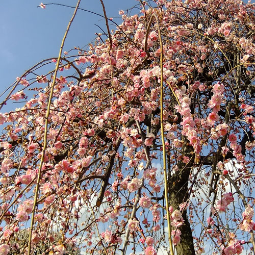 春の陽だまりで、枝を垂れ、華やかだ