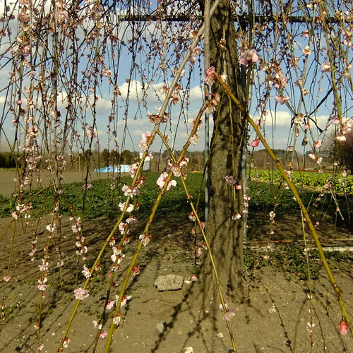 畑の中で伸びやかに育つ紅白梅