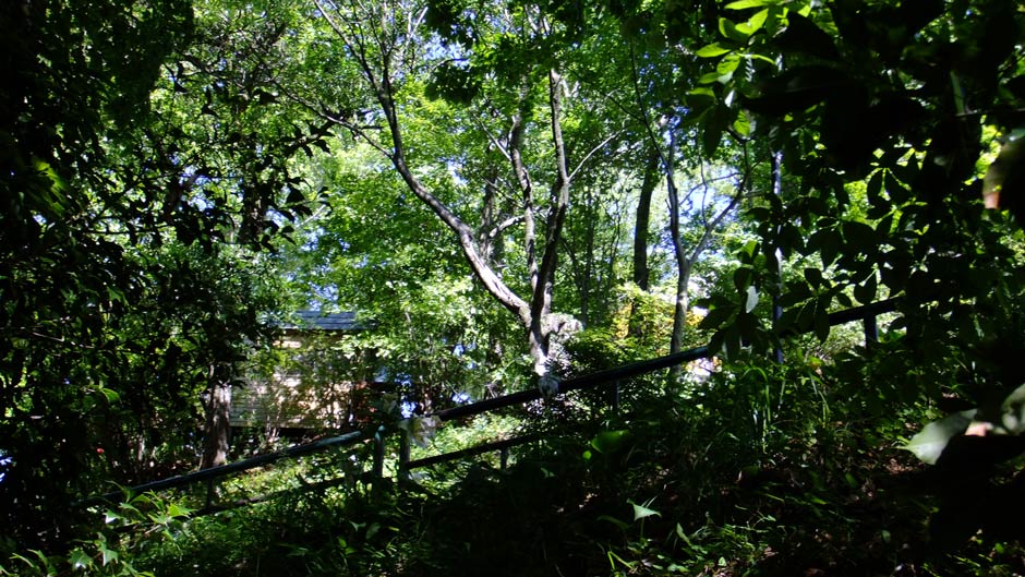 鶯の歌声を聞きながら、しっかりした枝を杖にして、慎重に下りてゆく