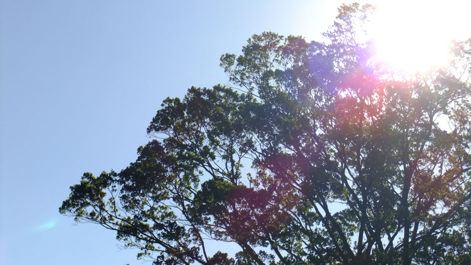清らかなせせらぎ、緑の梢に広がる太陽の輝きがまぶしい
