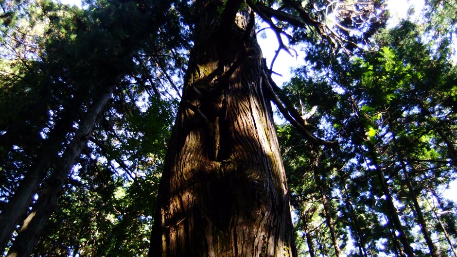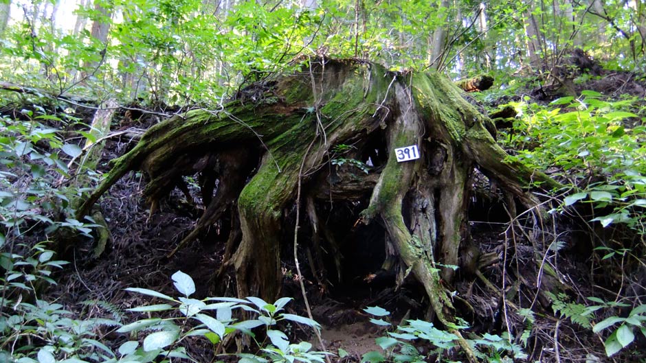 朽ちたかに見える根も、地表で堂々とした姿を見せる。
