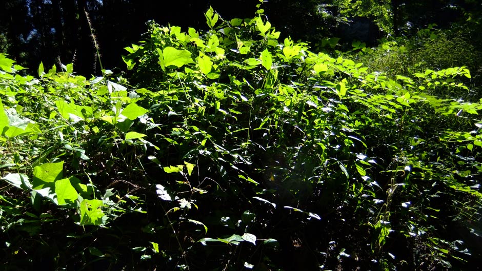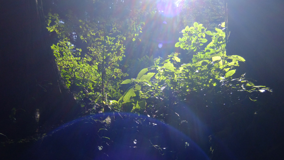 朝日が射し込む梢の緑は全身から喜びを伝える。